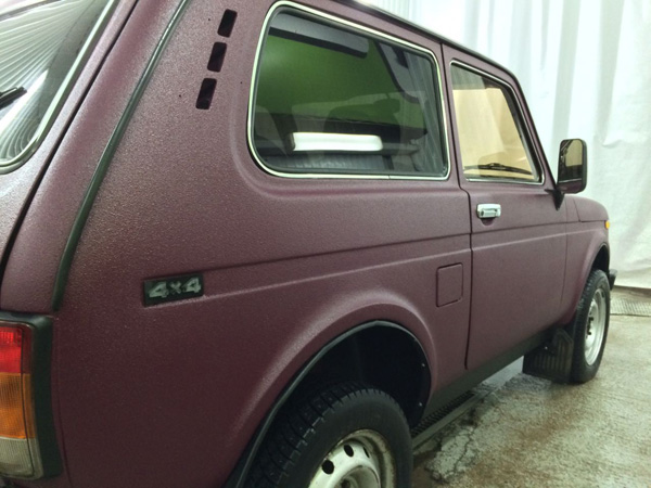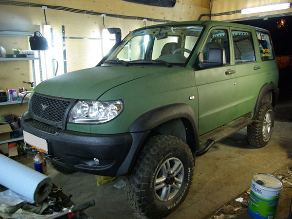 Выбор красок на автомобильном рынке просто огромен, все они различного цвета и большинство на выходе обеспечивают красивую глянцевую поверхность. Но вопрос визуальной красоты при использовании внедорожников стоит на второстепенном уровне, а главное – это надежность, устойчивость к механическим воздействиям, грязи и влаги. Глянцевые поверхности, часто при первых серьезных царапинах сразу образуют сколы, на которых поверхность начинает ржаветь и теряет внешний вид. Владельцы внедорожников, как отечественных по типу Нивы, УАЗа, так и импортных: Jeep, Toyota, Mitsubishi и прочих, которые являются охотниками, рыбаками или любителями активного отдыха на природе ищут варианты обновления заводского лакокрасочного покрытия на новое более надежное.